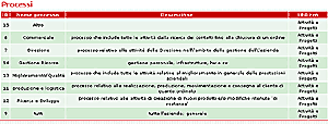 Visualizza i processi dell’Azienda, ovvero l’elenco dei processi in cui si può pensare ‘scomposta’ l’Azienda, in base anche a quanto previsto dalla norma ISO 9001:2000 sui sistemi di gestione per la qualità,