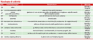 Le tipologie di attività e progetti previste. La classificazione delle attività in tipologie può consentire una maggiore efficienza nelle attività di ricerca (visualizza tutte le non conformità, visualizza tutte le attività manutentive, etc..)